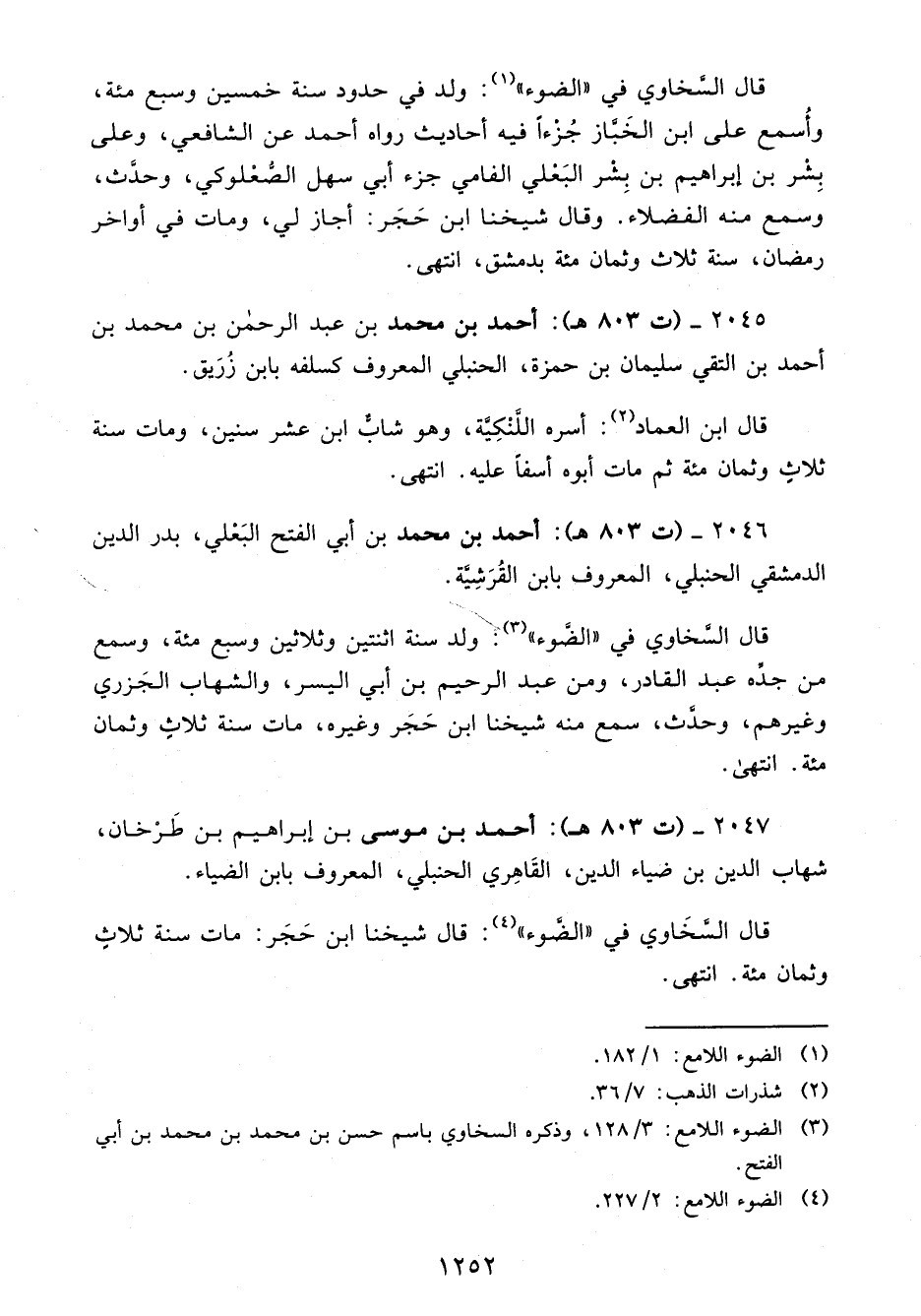 2047 - (ت 803 هـ): أحمد بن موسى بن إبراهيم بن طَرْخان، شهاب الدين بن ضياء الدين، القَاهِري الحنبلي، المعروف بابن الضياء.