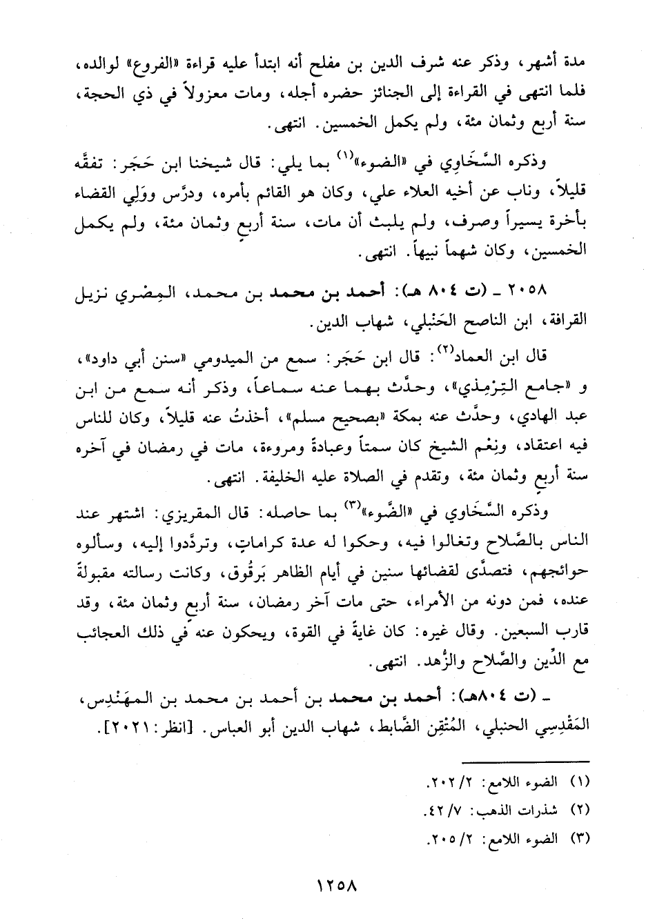 2058 - (ت 804 هـ): أحمد بن محمد بن محمد، المِصْري نزيل القرافة، ابن الناصح الحَنْبلي، شهاب الدين.