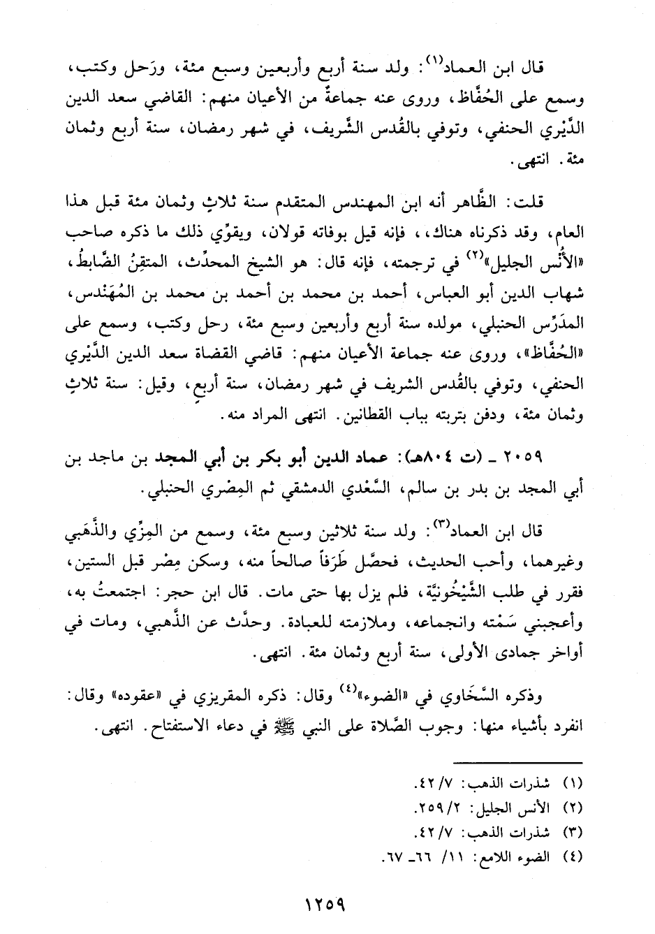 2059 - (ت 804 هـ): عماد الدين أبو بكر بن أبي المجد بن ماجد بن أبي المجد بن بدر بن سالم، السَّعْدي الدمشقي ثم المِصْري الحنبلي.
