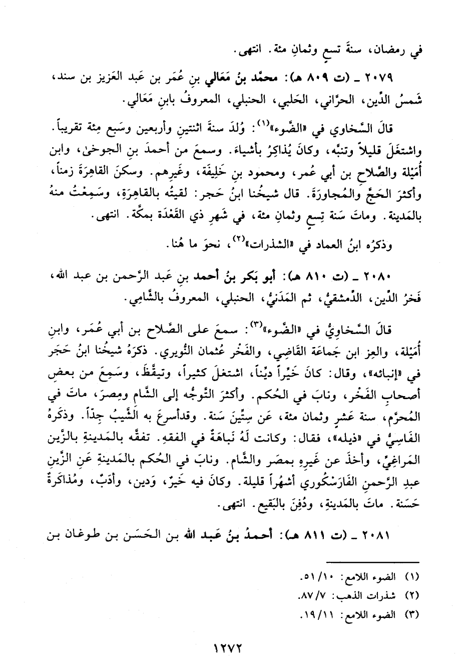 2079 - (ت 809 هـ): محمَّد بنُ مَعَالي بنِ عُمَر بن عَبد العَزيز بن سند، شَمسُ الدِّين، الحرَّاني، الحَلبي، الحنبلي، المعروفُ بابنِ مَعَالي.
