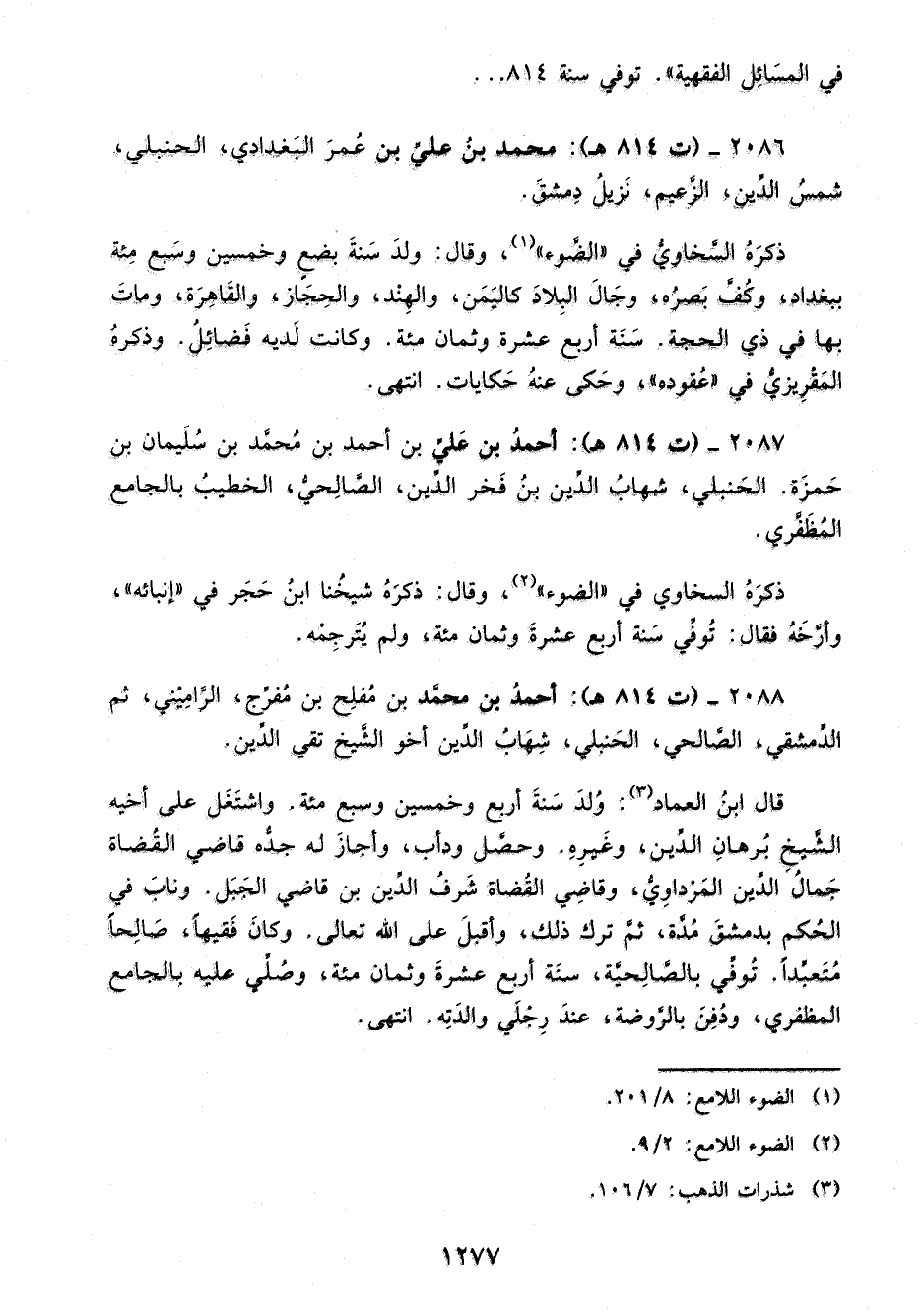 2086 - (ت 814 هـ): محمد بنُ عليِّ بن عُمرَ البَغدادي، الحنبلي، شمسُ الدِّين، الزَّعيم، نَزيلُ دِمشقَ.