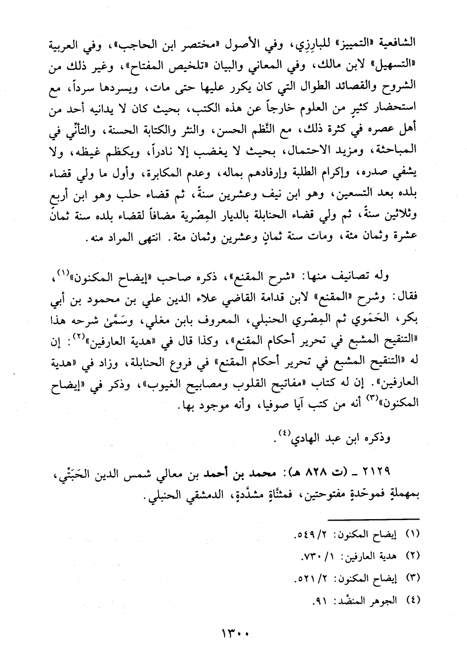 2129 - (ت 828 هـ): محمد بن أحمد بن معالي شمس الدين الحَبَتِّي، بمهملةٍ فموحّدةٍ مفتوحتين، فمثنَّاةٍ مشدَّدةٍ، الدمشقي الحنبلي.