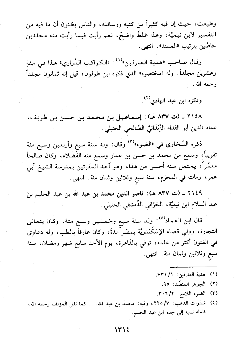 2149 - (ت 837 هـ): ناصر الدين محمد بن عبد الله بن عبد الحليم بن عبد السلام ابن تيميَّة، الحَرَّاني الدِّمشقي الحنبلي.