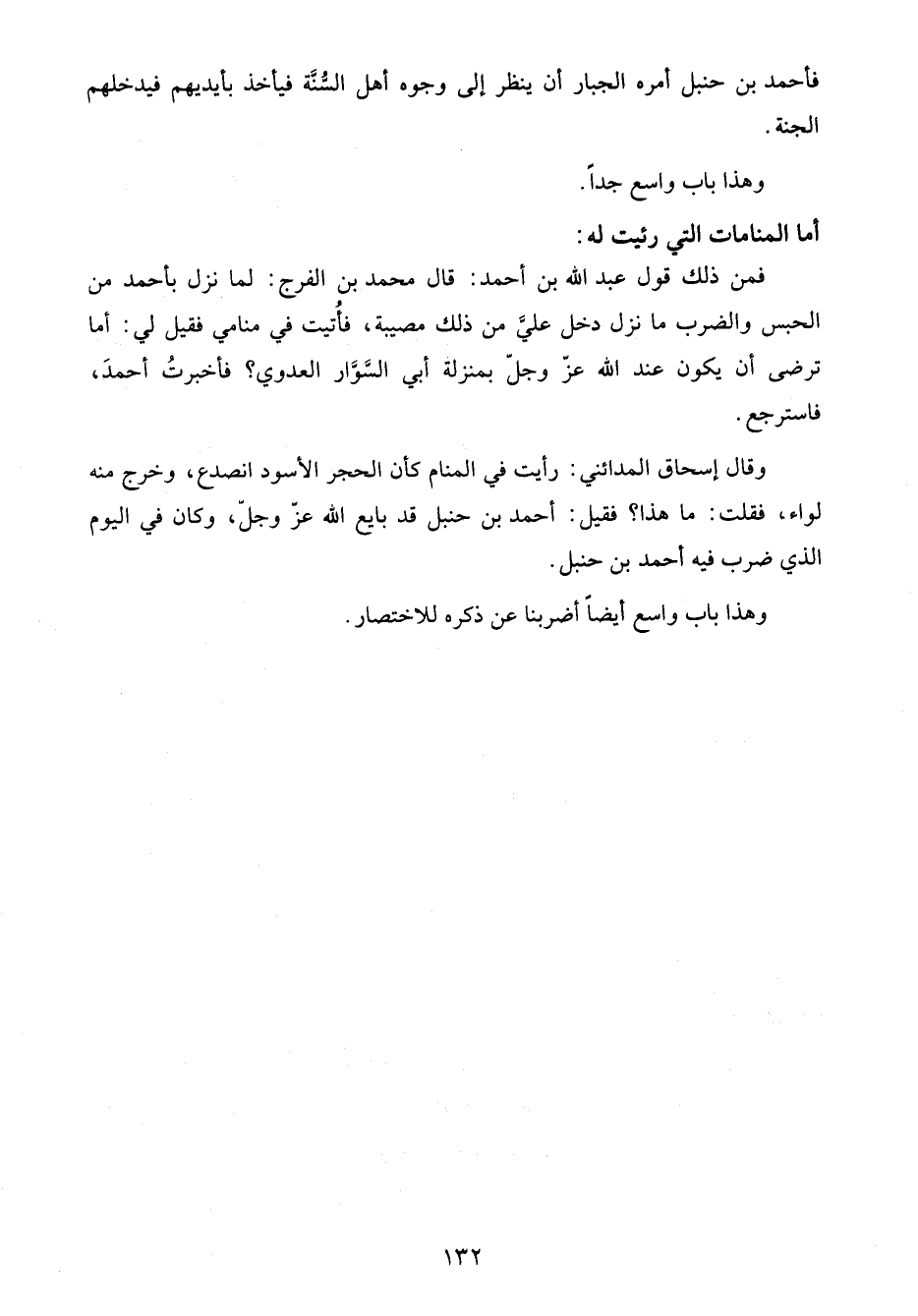 فأحمد بن حنبل أمره الجبار أن ينظر إلى وجوه أهل السُّنَّة فيأخذ بأيديهم فيدخلهم الجنة.