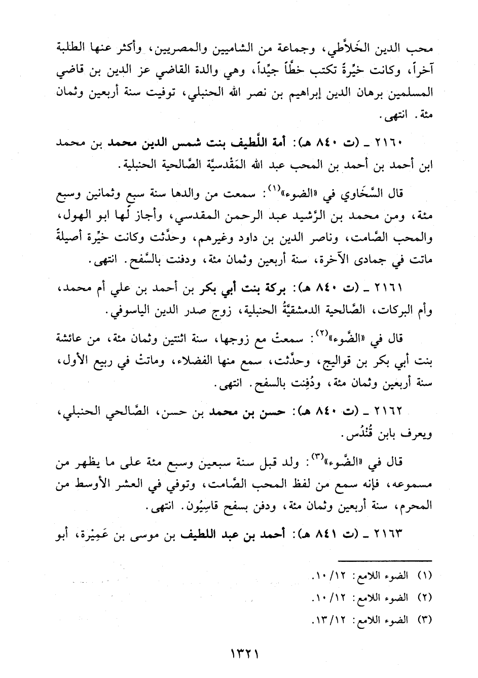 2160 - (ت 840 هـ): أمة اللَّطيف بنت شمس الدين محمد بن محمد ابن أحمد بن أحمد بن المحب عبد الله المَقْدسيَّة الصَّالحية الحنبلية.