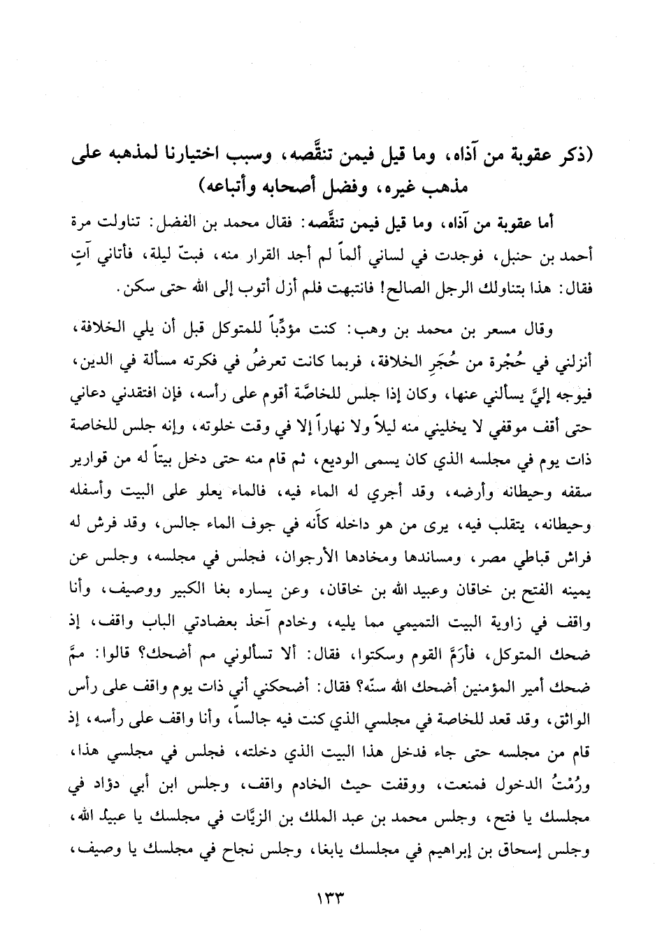(ذكر عقوبة من آذاه، وما قيل فيمن تنقَّصه، وسبب اختيارنا لمذهبه على مذهب غيره، وفضل أصحابه وأتباعه)