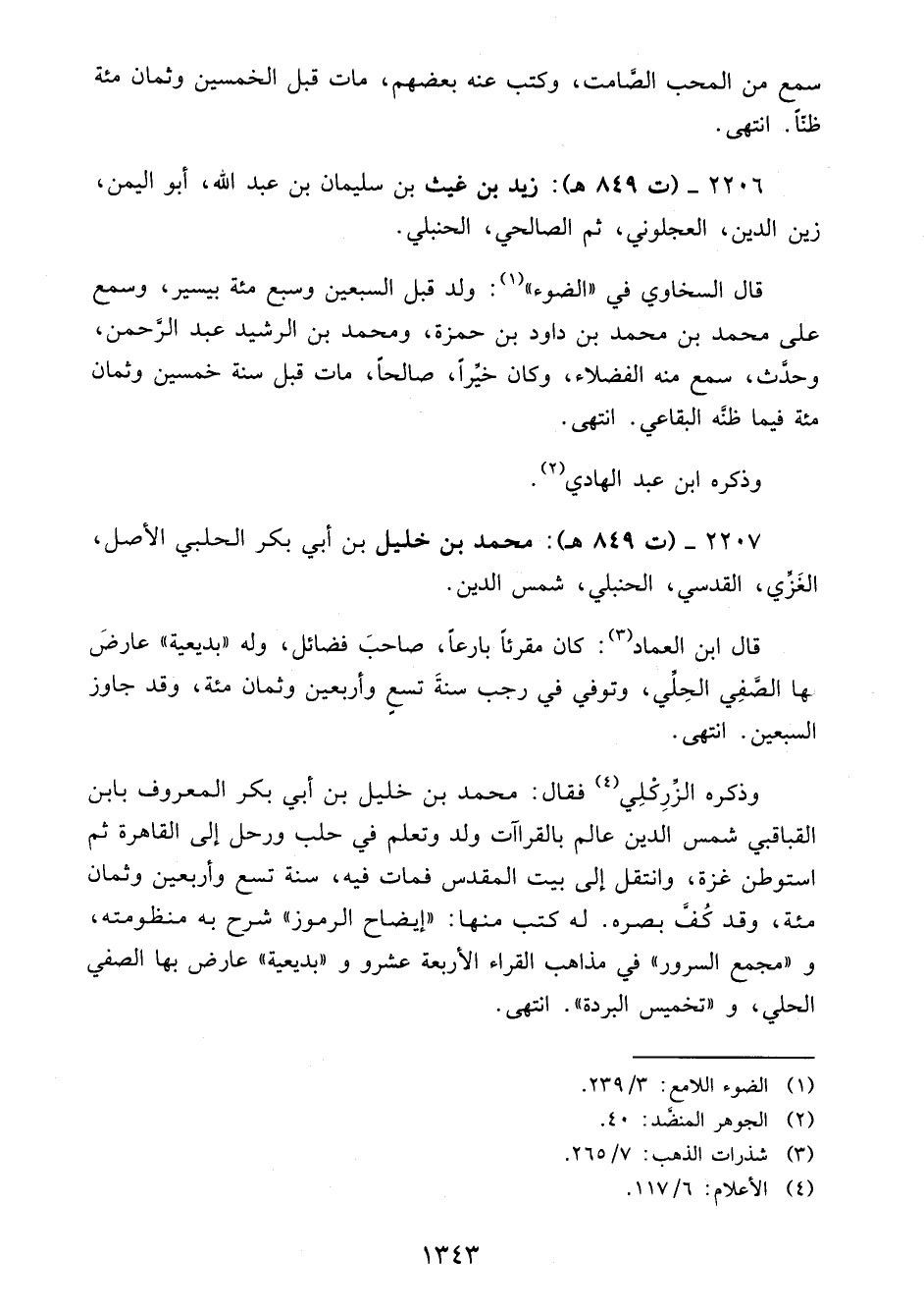 2207 - (ت 849 هـ): محمد بن خليل بن أبي بكر الحلبي الأصل، الغَزِّي، القدسي، الحنبلي، شمس الدين.