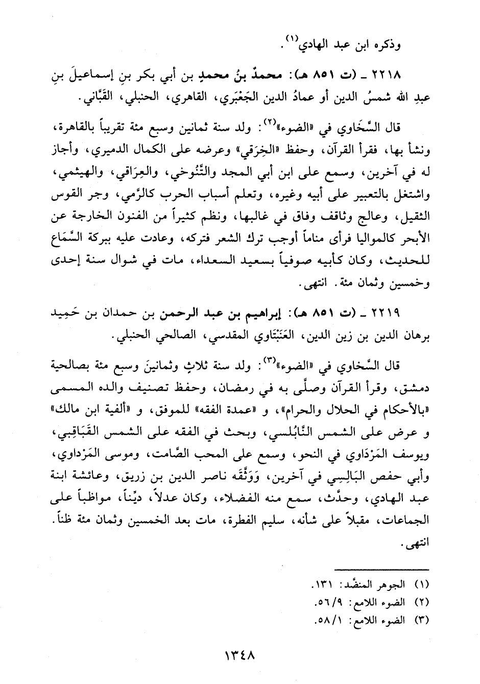 2218 - (ت 851 هـ): محمدٌ بنُ محمدٍ بن أبي بكر بنِ إسماعيلَ بنِ عبدِ الله شمسُ الدين أو عمادُ الدين الجَعْبَري، القاهري، الحنبلي، القَبَّاني.