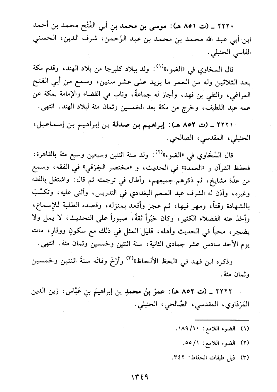 2220 - (ت 851 هـ): موسى بن محمد بنِ أبي الفَتْح محمد بن أحمد ابن أبي عبد الله محمد بن محمد بن عبد الرَّحمن، شرف الدين، الحسني الفاسي الحنبلي.