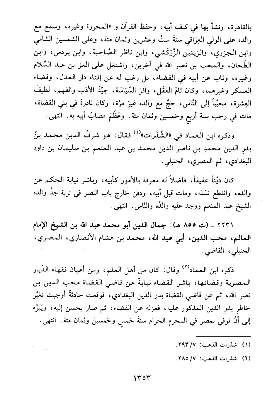 2231 - (ت 855 هـ): جمال الدين أبو محمد عبد الله بن الشيخ الإمام العالم، محب الدين، أبي عبد الله، محمد بن هشام الأنصاري، المصري، الحنبلي، القاضي.