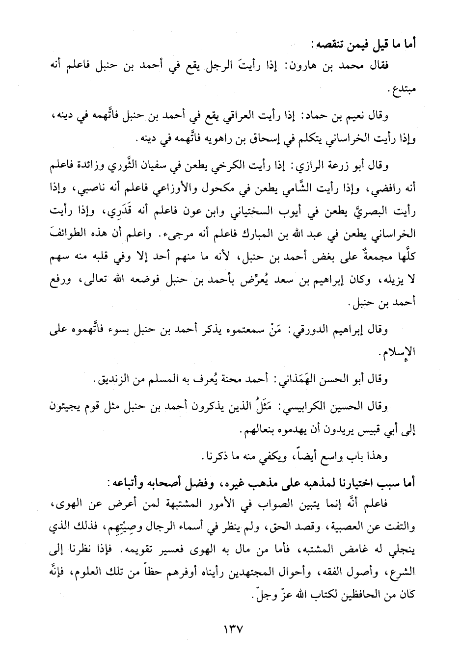 فاعلم أنَّه إنما يتبين الصواب في الأمور المشتبهة لمن أعرض عن الهوى، والتفت عن العصبية، وقصد الحق، ولم ينظر في أسماء الرجال وصِيْتِهِم، فذلك الذي ينجلي له غامض المشتبه، فأما من مال به الهوى فعسير تقويمه. فإذا نظرنا إلى الشرع، وأصول الفقه، وأحوال المجتهدين رأيناه أوفرهم حظًا من تلك العلوم، فإنَّه كان من الحافظين لكتاب الله عزّ وجلّ.