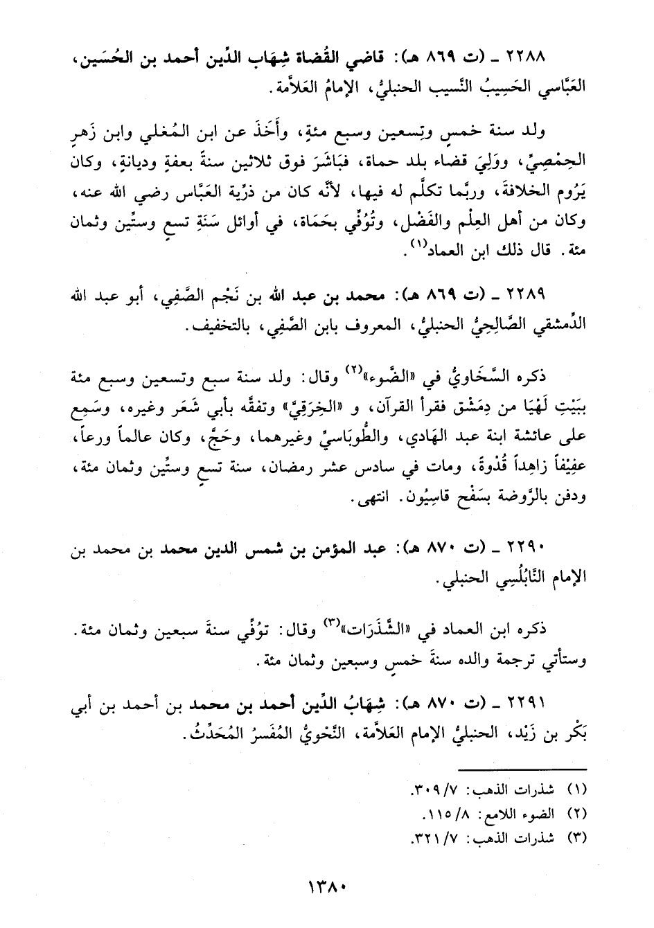 2288 - (ت 869 هـ): قاضي القُضاة شِهَاب الدِّين أحمد بن الحُسَين، العَبَّاسي الحَسِيبُ النَّسيب الحنبليُّ، الإمامُ العَلَّامة.