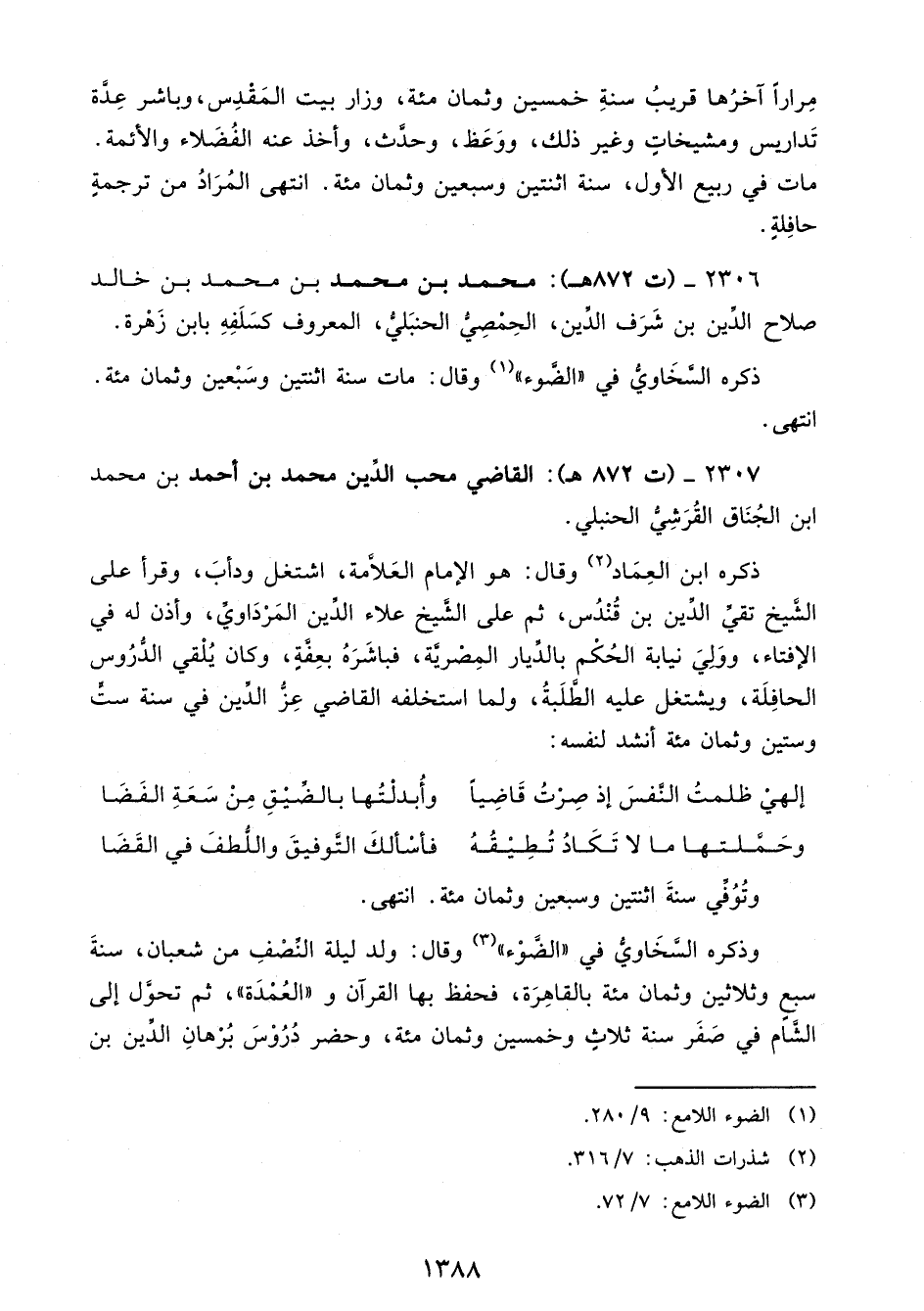 2307 - (ت 872 هـ): القاضي محب الدِّين محمد بن أحمد بن محمد ابن الجُنَاق القُرَشِيُّ الحنبلي.