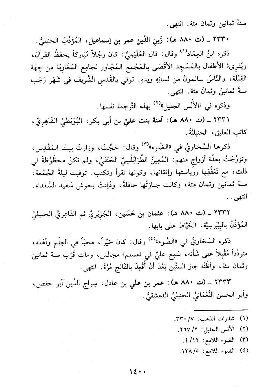 2330 - (ت 880 هـ): زَينِ الدَّين عمر بن إسماعيل، المُؤَدَّبُ الحنبليُّ.