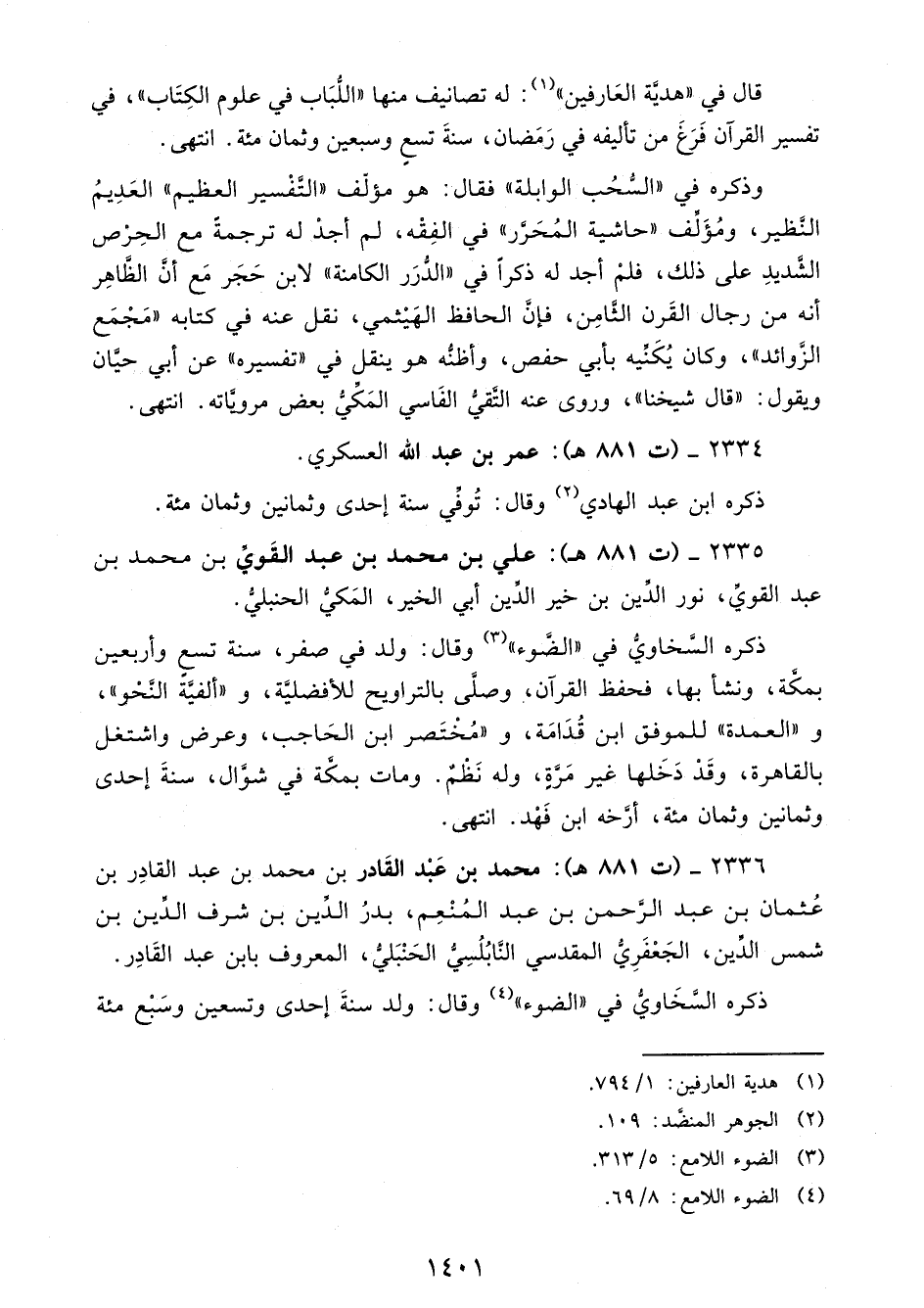 2335 - (ت 881 هـ): علي بن محمد بن عبد القَويَّ بن محمد بن عبد القويَّ، نور الدَّين بن خير الدَّين أبي الخير، المَكيُّ الحنبليُّ.