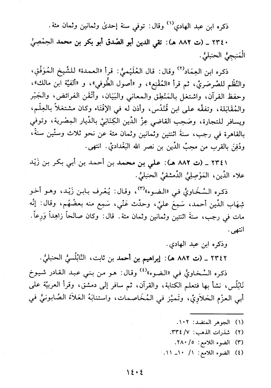 2341 - (ت 882 هـ): علي بن محمد بن أحمد بن أبي بكر بن زَيْد علاء الدَّين، المَوْصِلِيُّ الدَّمشقيُّ الحنبليُّ.