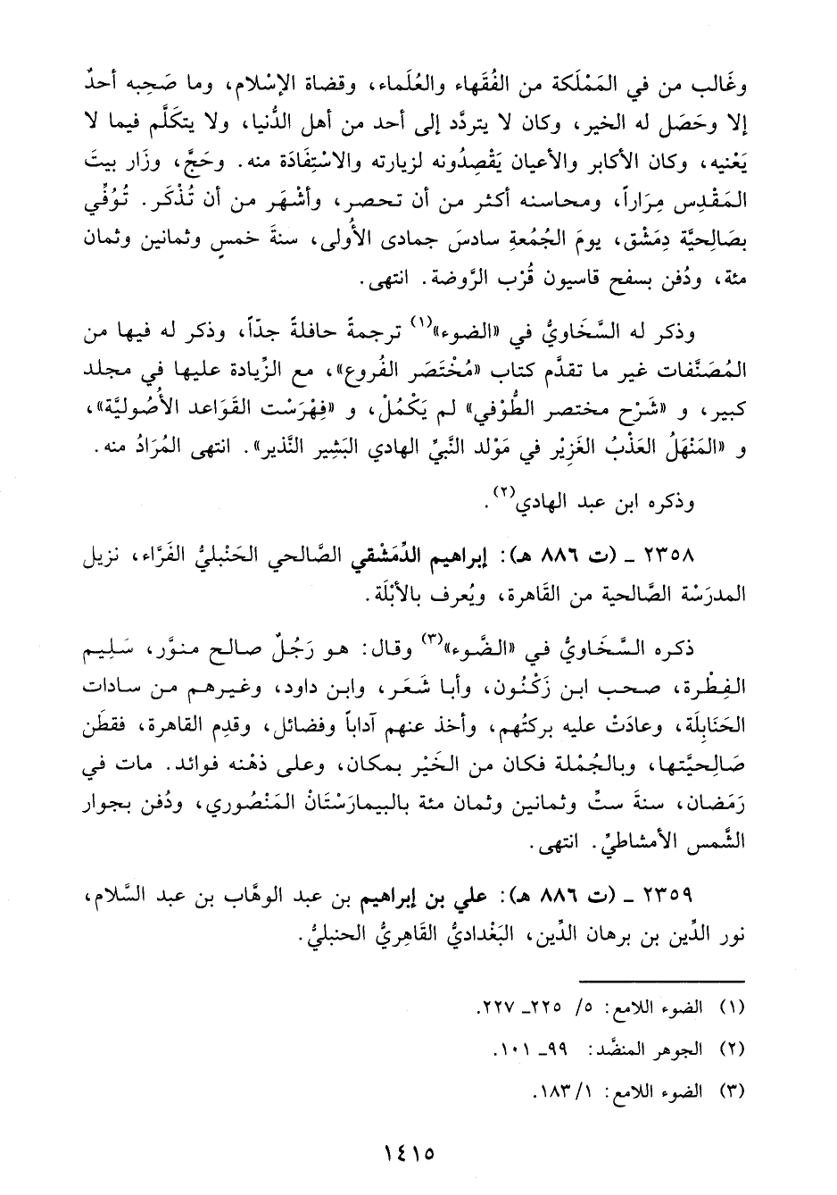 2358 - (ت 886 هـ): إبراهيم الدَّمَشْقي الصَّالحي الحَنْبليُّ الفَرَّاء، نزيل المدرَسْة الصَّالحية من القَاهرة، ويُعرف بالأبْلَة.