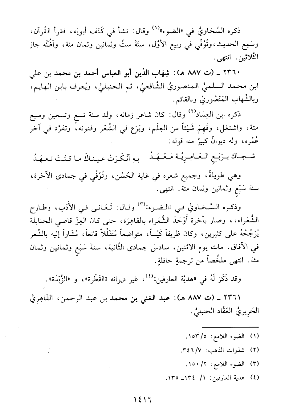2361 - (ت 887 هـ): عبد الغني بن محمد بن عبد الرحمن، القَاهِرِيُّ الحَرِيريُّ العَقَّاد الحنبليُّ.