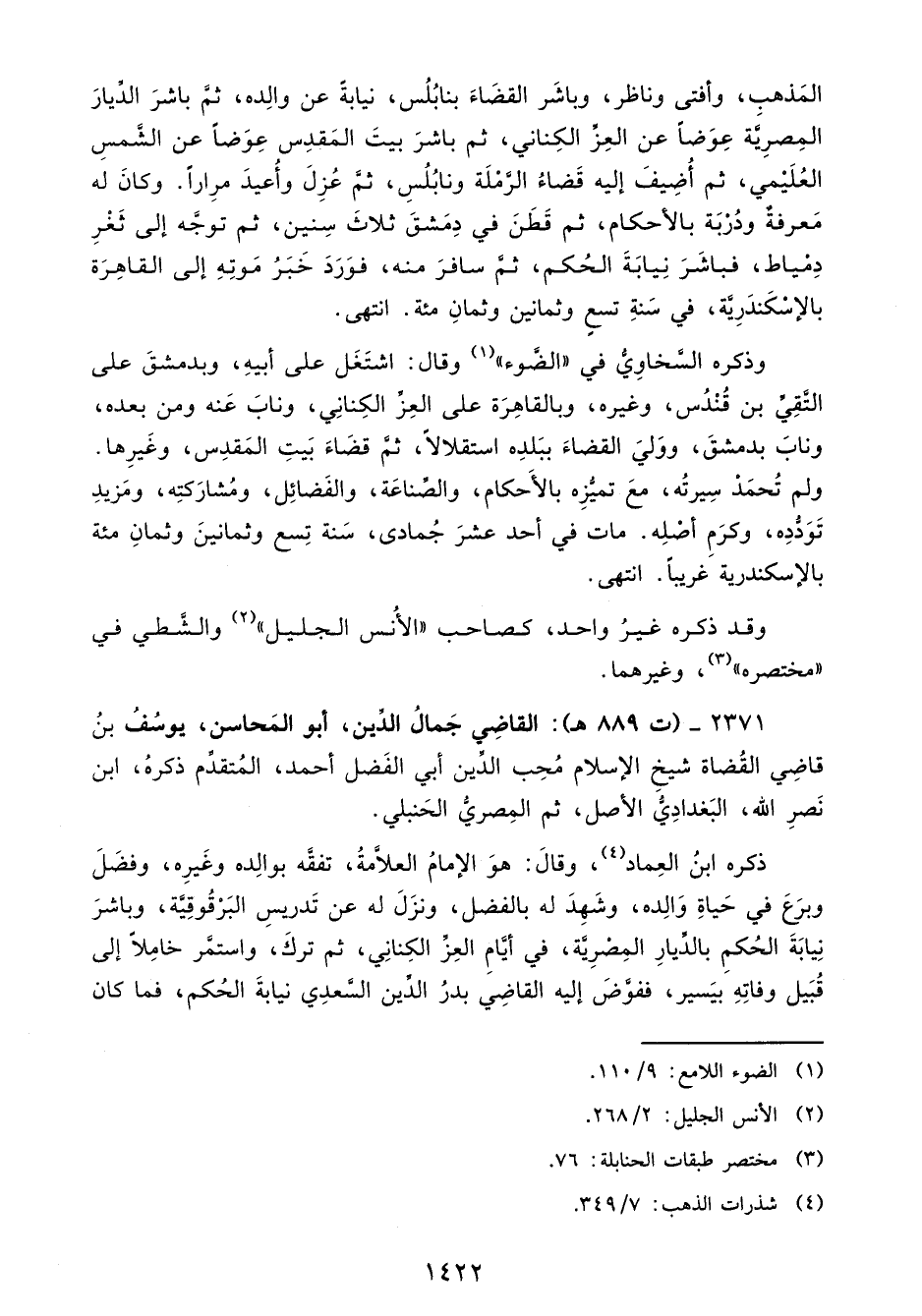2371 - (ت 889 هـ): القاضِي جَمالُ الدَّين، أبو المَحاسن، يوسُفُ بنُ قاضِي القُضاة شيخِ الإسلام مُحِب الدَّين أبي الفَضل أحمد، المُتقدَّم ذكرهُ، ابن نَصرِ الله، البَغدادِيُّ الأصل، ثم المِصريُّ الحَنبلي.