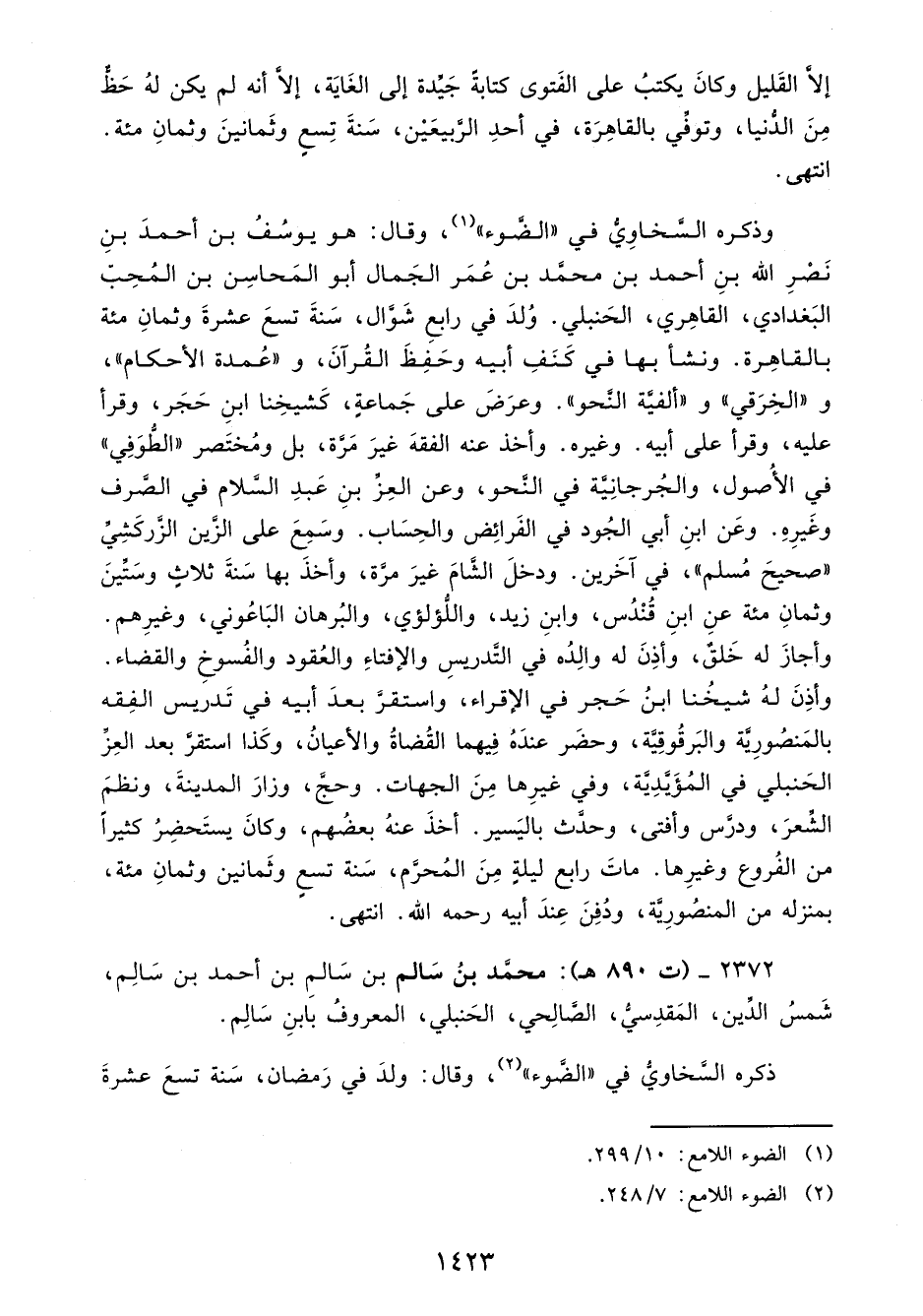 2372 - (ت 890 هـ): محمَّد بنُ سَالم بن سَالمِ بن أحمد بن سَالِم، شَمسُ الدَّين، المَقدِسيُّ، الصَّالِحي، الحَنبلي، المعروفُ بابنِ سَالِم.