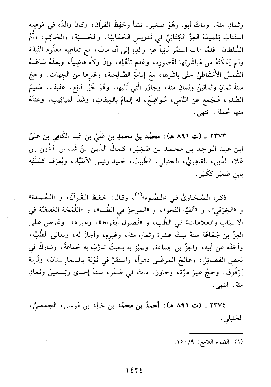 (¬1) الضوء اللامع: 9/ 150.