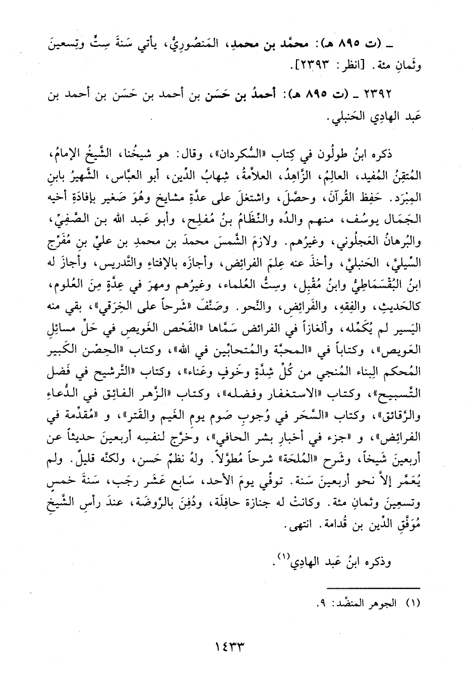 2392 - (ت 895 هـ): أحمدُ بن حَسَن بن أحمد بن حَسَن بن أحمد بن عَبد الهادِي الحَنبلي.