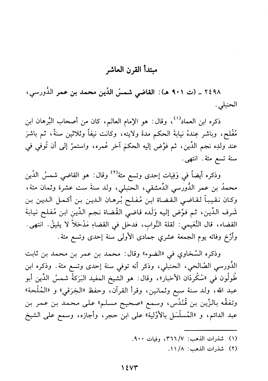2498 - (ت 901 هـ): القاضي شمسُ الدِّين محمد بن عمر الدُّورسي، الحنبلي.
