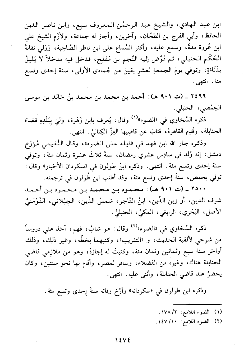 2499 - (ت 901 هـ): أحمد بن محمد بنِ محمد بنُ خالد بن موسى الحِمْصي، الحنبلي.