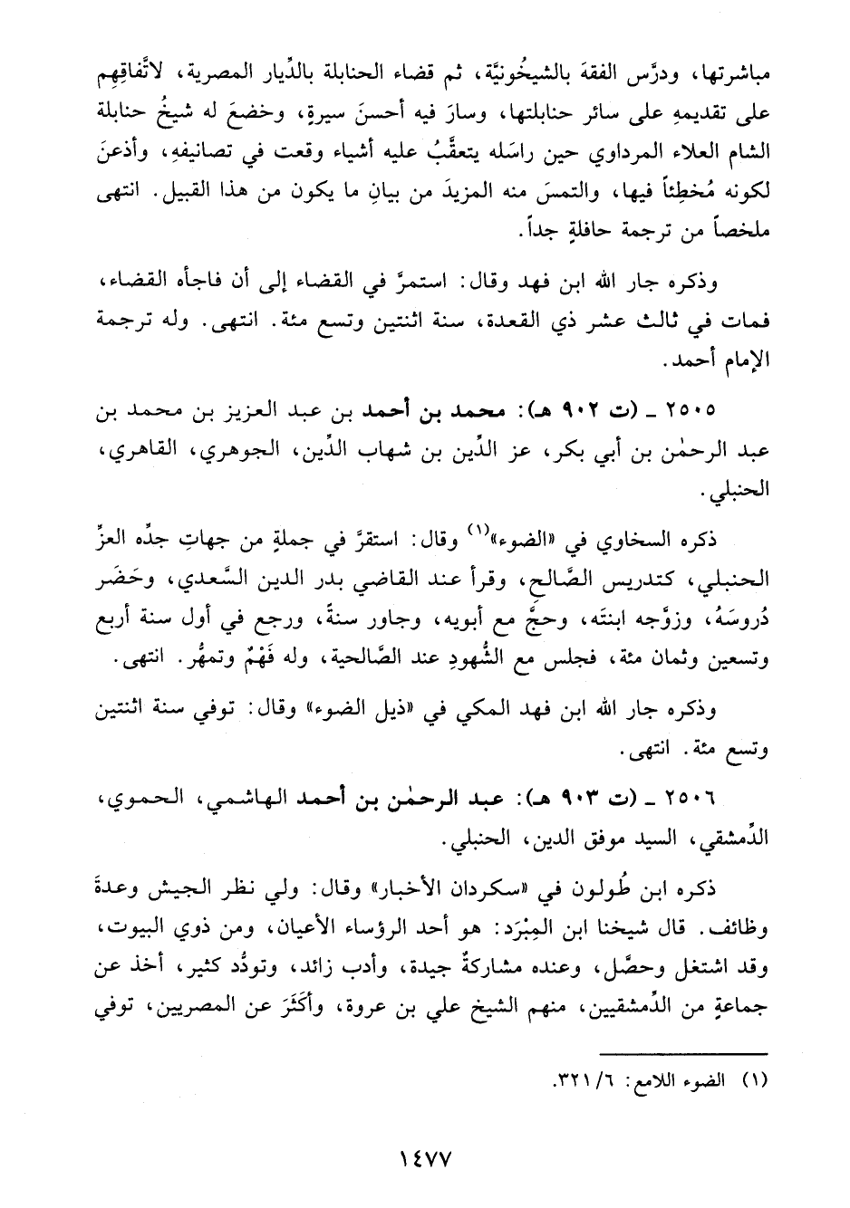 2506 - (ت 903 هـ): عبد الرحمن بن أحمد الهاشمي، الحموي، الدِّمشقي، السيد موفق الدين، الحنبلي.