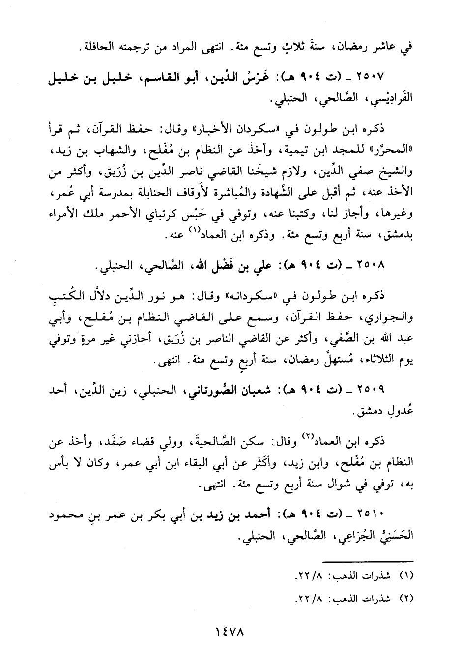 2510 - (ت 904 هـ): أحمد بن زيد بن أبي بكر بن عمر بنِ محمود الحَسَنِيُّ الجُرَاعِي، الصَّالحي، الحنبلي.