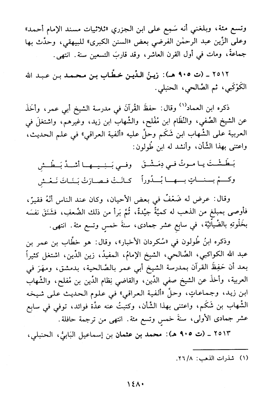 2512 - (ت 905 هـ): زينُ الدِّين خطَّاب بن محمد بن عبد الله الكَوْكَبي، ثم الصَّالحي، الحنبلي.