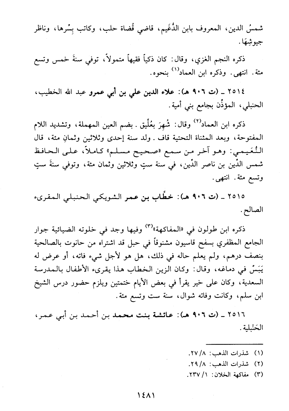 2514 - (ت 906 هـ): علاء الدين علي بن أبي عمرو عبد الله الخطيب، الحنبلي، المؤذِّن بجامع بني أمية.