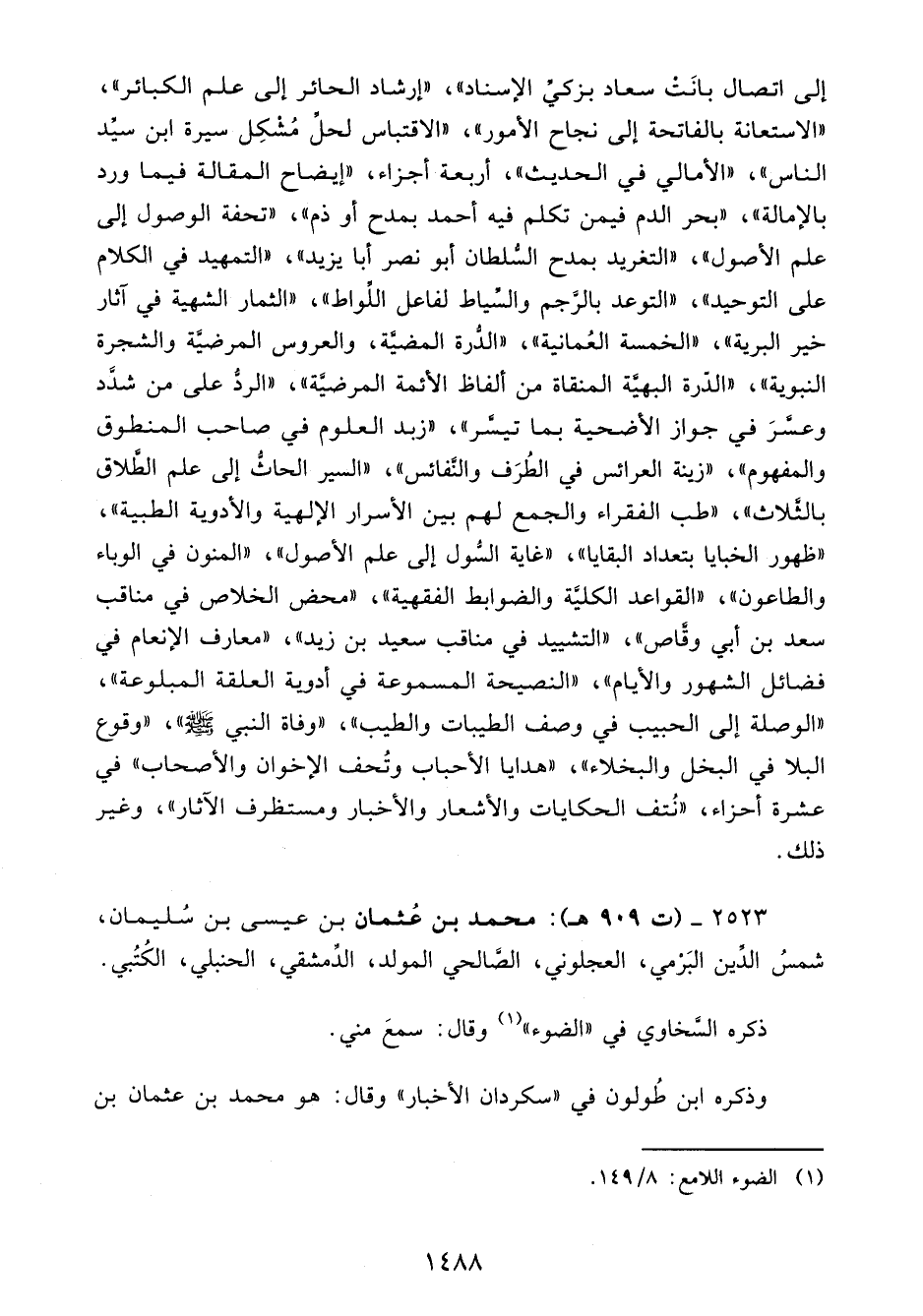 2523 - (ت 909 هـ): محمد بن عُثمان بن عيسى بن سُليمان، شمسُ الدِّين البَرْمي، العجلوني، الصَّالحي المولد، الدِّمشقي، الحنبلي، الكُتُبي.