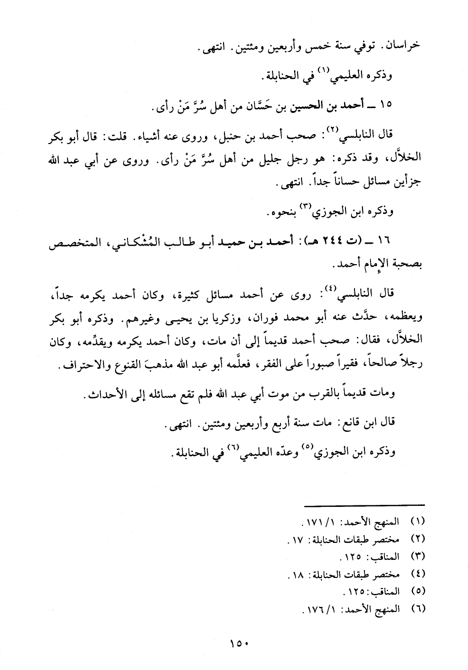 16 - (ت 244 هـ): أحمد بن حميد أبو طالب المُشْكاني، المتخصص بصحبة الإِمام أحمد.