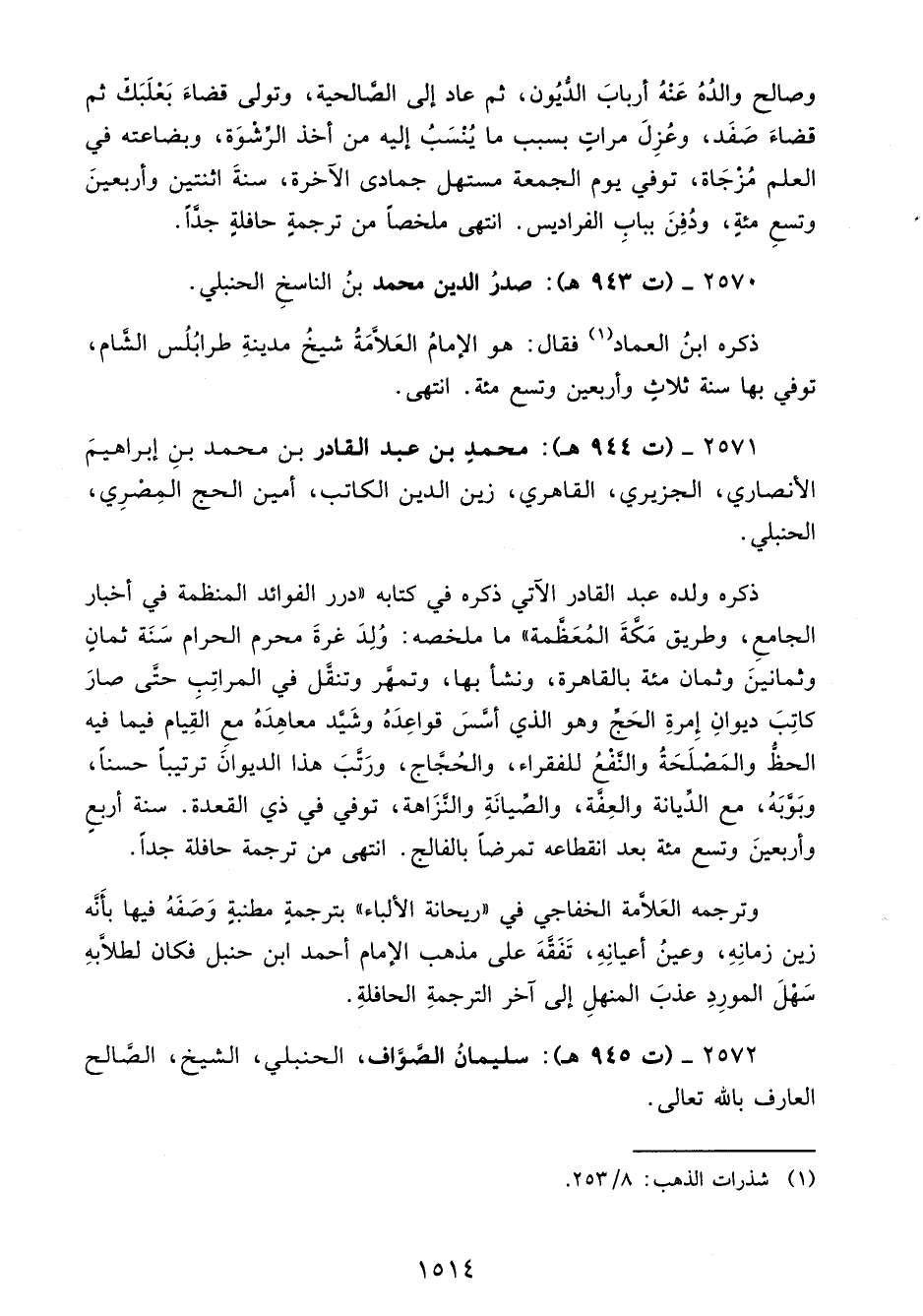 2570 - (ت 943 هـ): صدرُ الدين محمد بنُ الناسخِ الحنبلي.