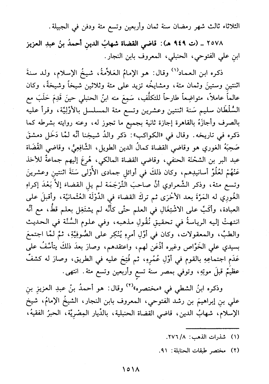 2578 - (ت 949 هـ): قاضي القضاة شهابُ الدينِ أحمدُ بنُ عبدِ العزيز ابنِ علي الفتوحي، الحنبلي، المعروف بابن النجار.