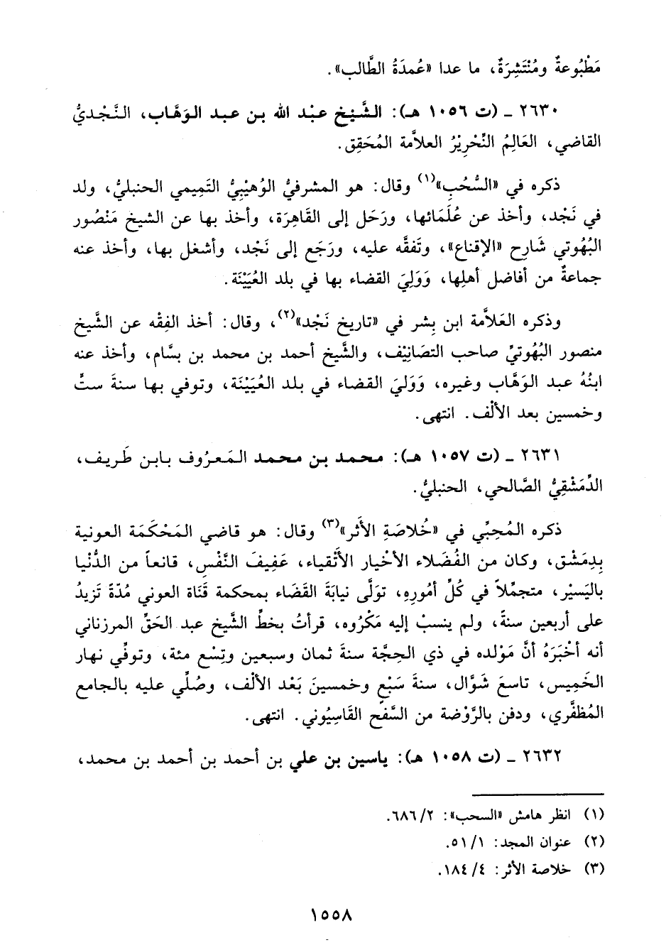 2630 - (ت 1056 هـ): الشَّيْخ عبْد الله بن عبد الوَهَّاب، النَّجْديُّ القاضي، العَالِمُ النِّحْرِيْرُ العلَّامة المُحَقِق.