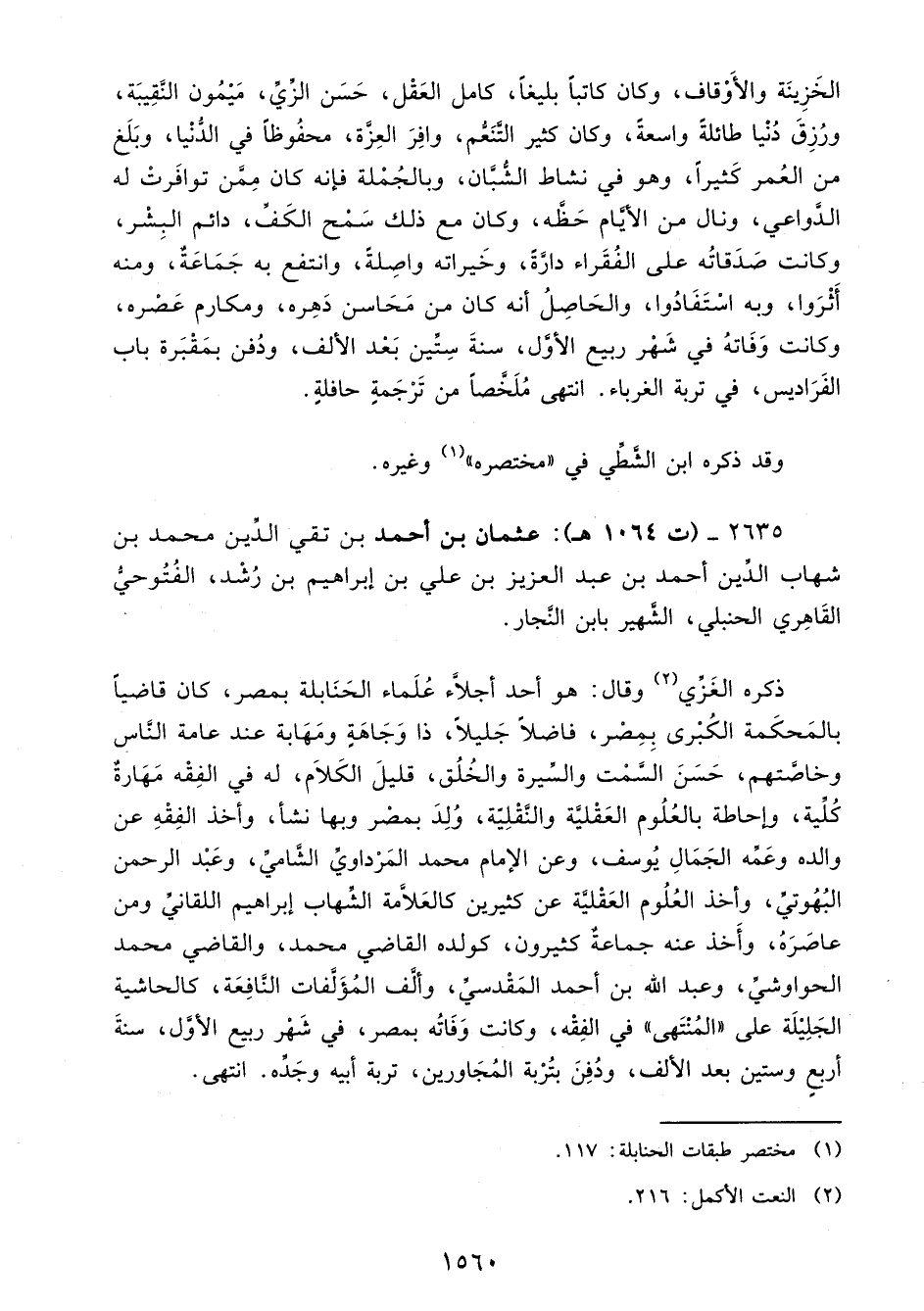 2635 - (ت 1064 هـ): عثمان بن أحمد بن تقي الدِّين محمد بن شهاب الدِّين أحمد بن عبد العزيز بن علي بن إبراهيم بن رُشْد، الفُتُوحيُّ القَاهِري الحنبلي، الشَّهير بابن النَّجار.