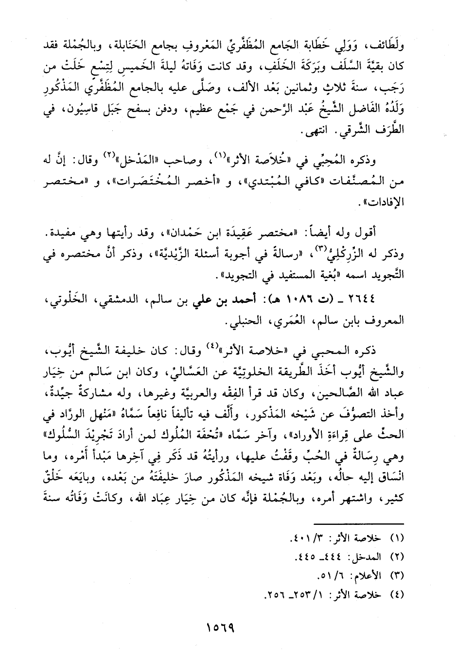 2644 - (ت 1086 هـ): أحمد بن علي بن سالم، الدمشقي، الخَلْوتي، المعروف بابن سالم، العُمَري، الحنبلي.