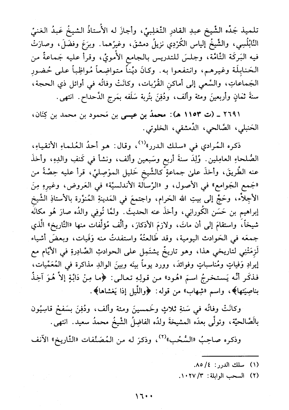 2691 - (ت 1153 هـ): محمدُ بن عيسى بن مَحمود بن محمد بن كِنَان، الحَنبلي، الصَّالحي، الدِّمشقي، الخلوتي.