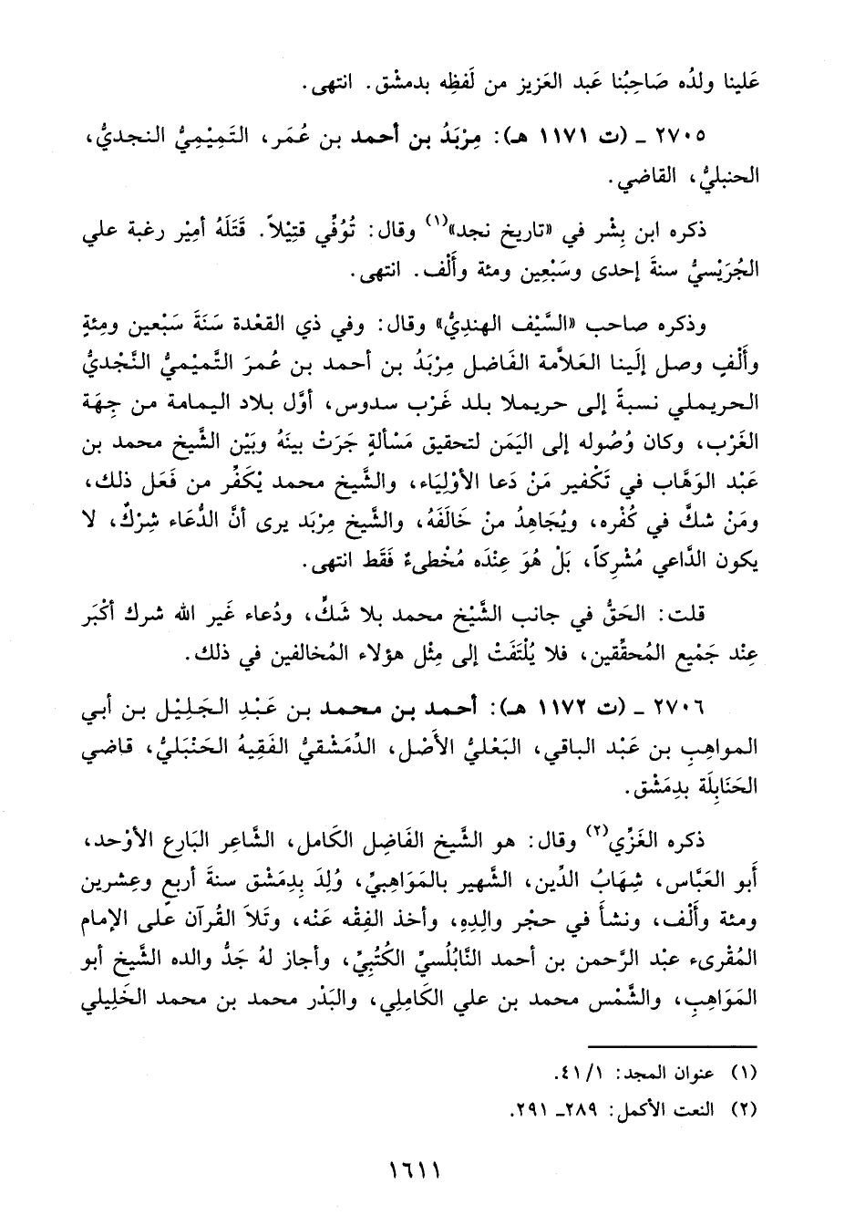 2705 - (ت 1171 هـ): مِرْبَدُ بن أحمد بن عُمَر، التَمِيْمِيُّ النجديُّ، الحنبليُّ، القاضي.