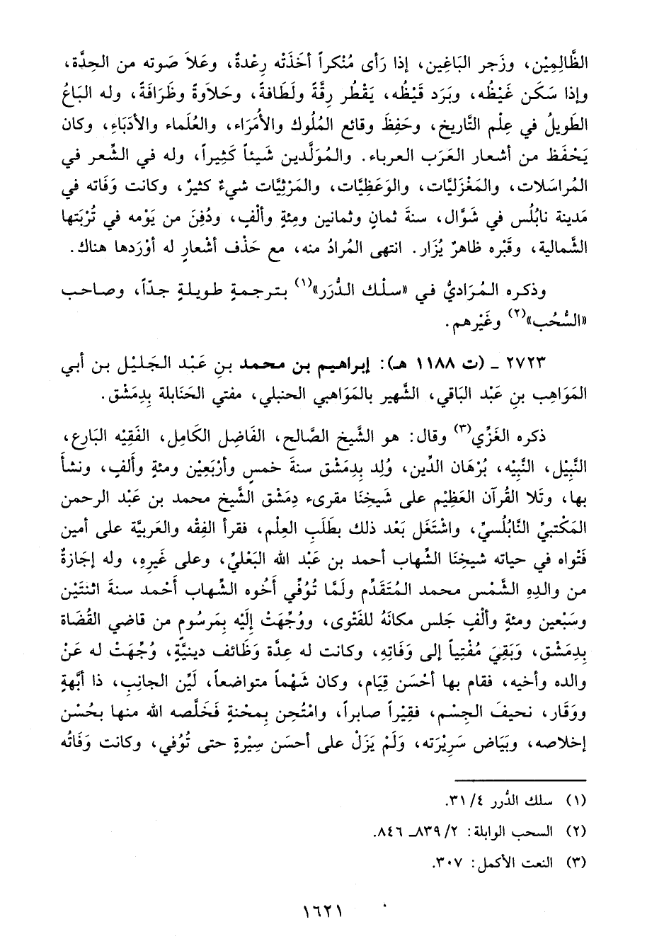 2723 - (ت 1188 هـ): إبراهيم بن محمد بنِ عَبْد الجَليْل بن أبي المَوَاهِب بنِ عَبْد البَاقي، الشَّهير بالمَوَاهبي الحنبلي، مفتي الحَنَابلة بِدِمَشْق.
