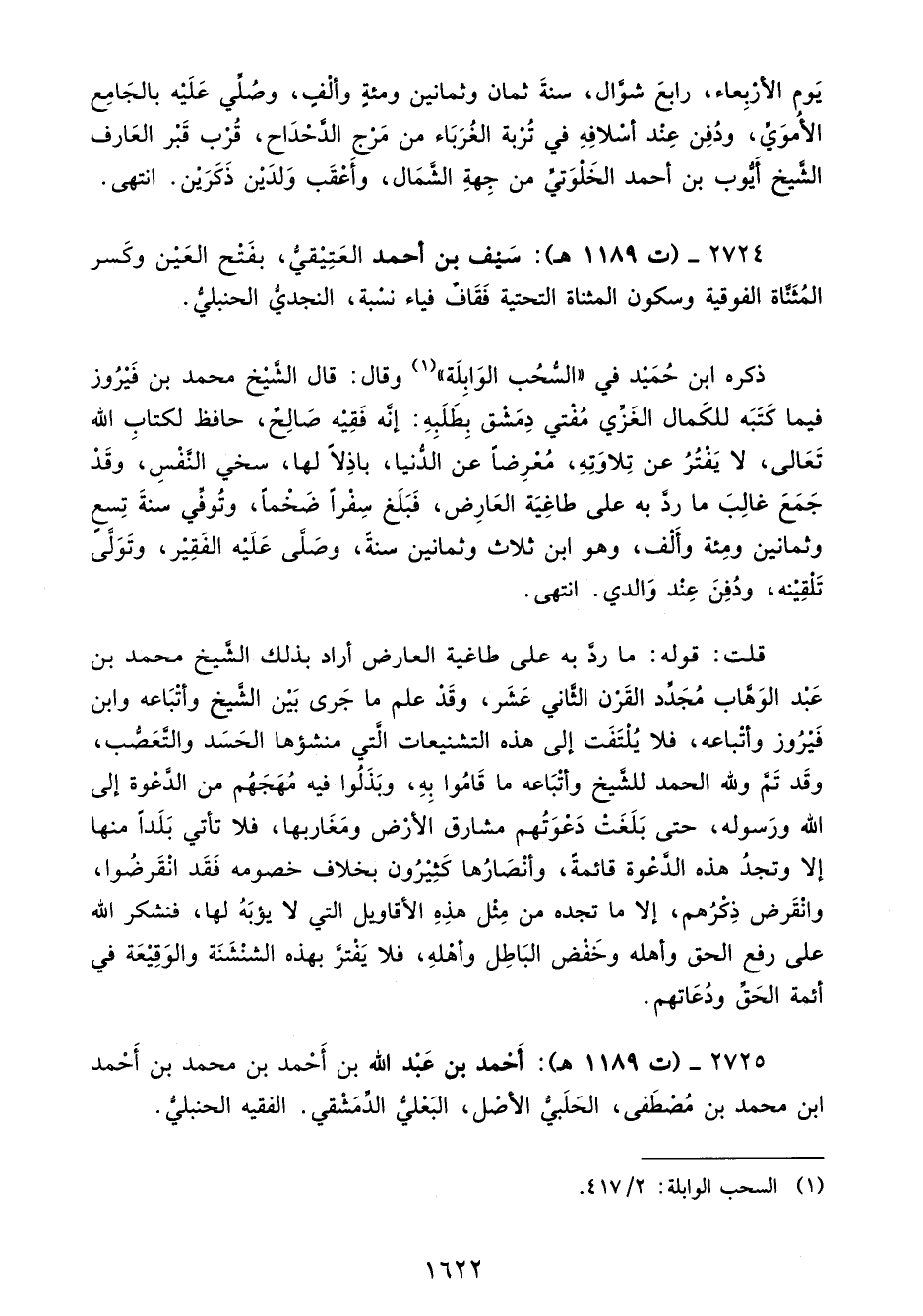 2724 - (ت 1189 هـ): سَيْف بن أحمد العَتِيْقيُّ، بفَتْح العَيْن وكَسر المُثَنَّاة الفوقية وسكون المثناة التحتية فَقَافٌ فياء نسْبة، النجديُّ الحنبليُّ.