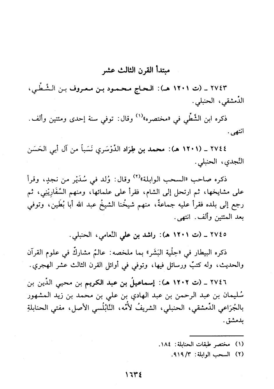2743 - (ت 1201 هـ): الحاج محمود بن معروف بن الشَّطِّي، الدِّمشقي، الحنبلي.