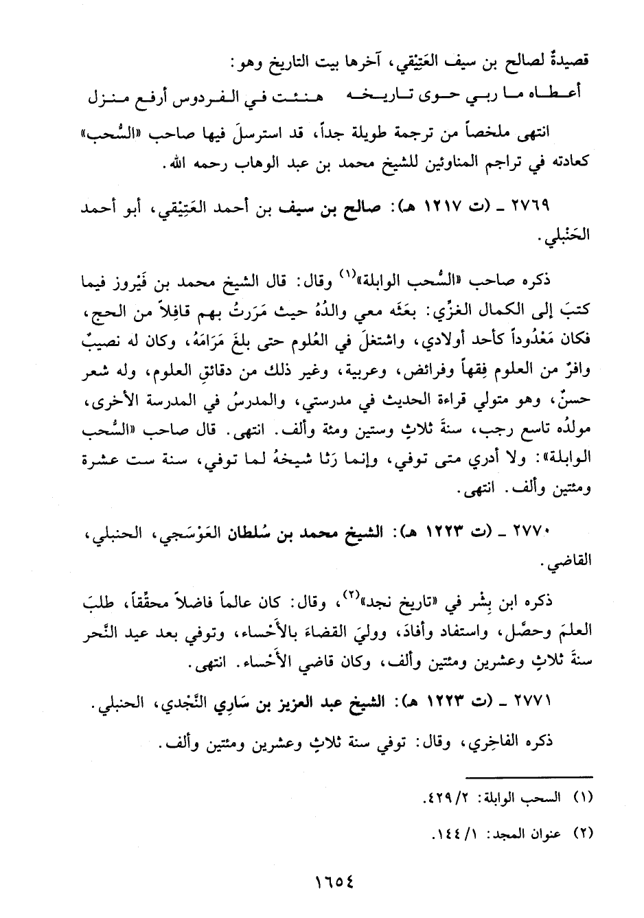 2769 - (ت 1217 هـ): صالح بن سيف بن أحمد العَتِيْقي، أبو أحمد الحَنْبلي.