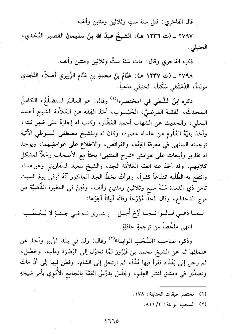 2798 - (ت 1237 هـ): غنَّامُ بنُ محمدٍ بنِ غنَّام الزُّبيري أصلًا، النَّجْدي مولدًا، الدِّمَشْقي سَكَنًا، الحنبلي مذهبًا.