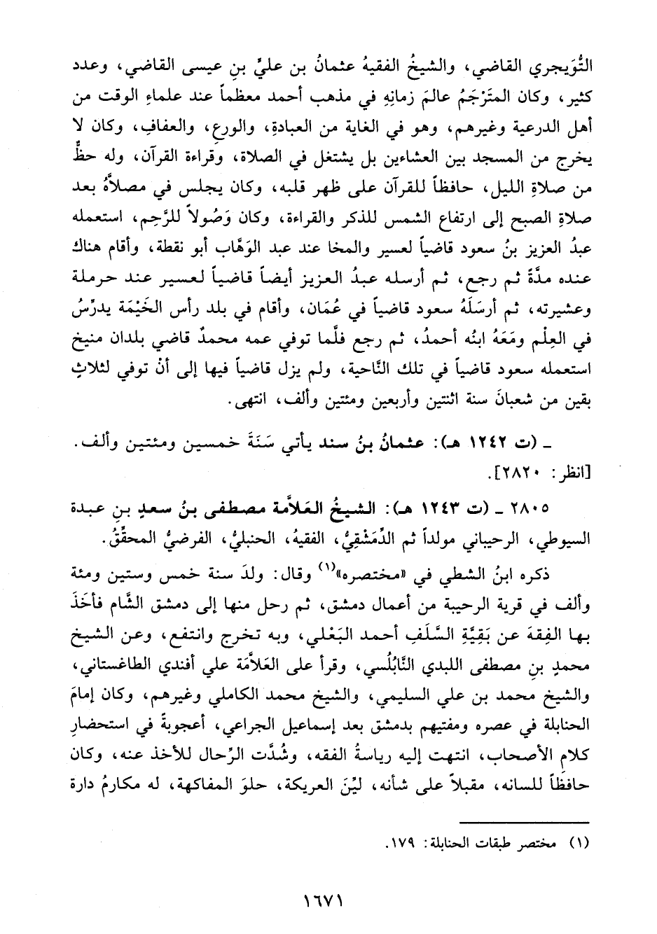 - (ت 1242 هـ): عثمانُ بنُ سند يأتي سَنَةَ خمسين ومئتين وألف. [انظر: 2820].