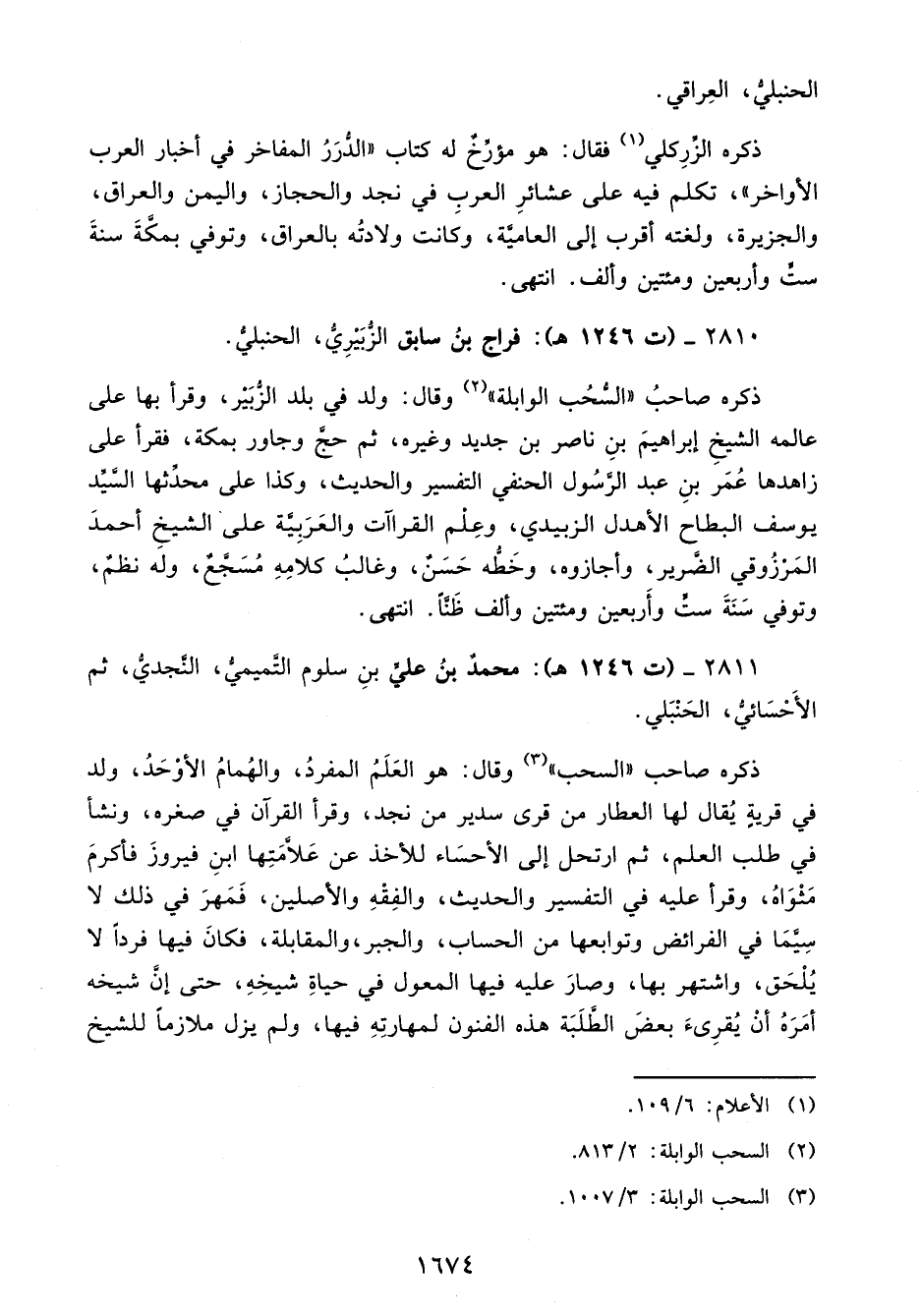 2810 - (ت 1246 هـ): فراج بنُ سابق الزُّبَيْرِيُّ، الحنبليُّ.