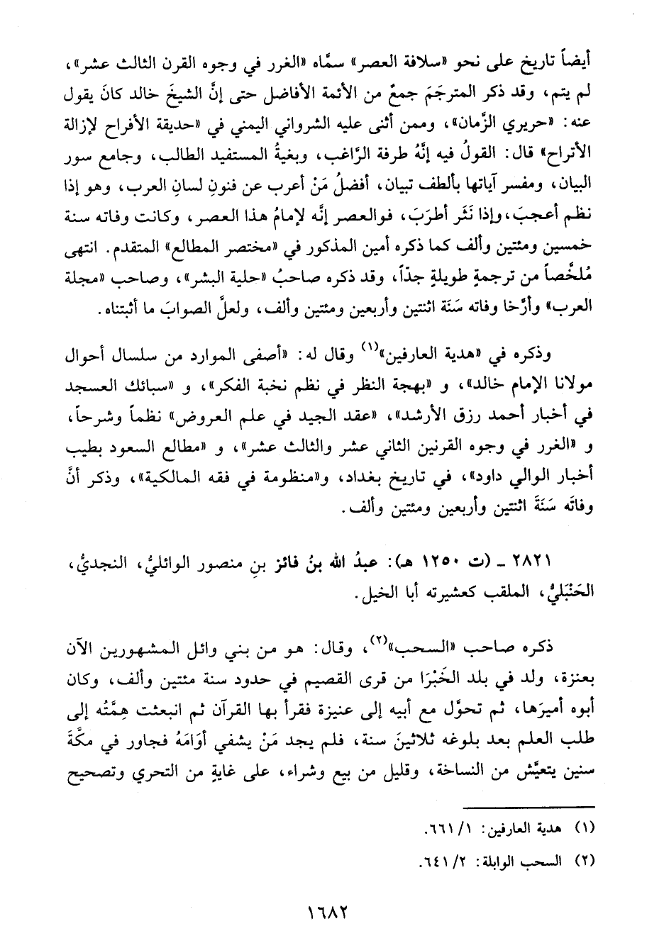 2821 - (ت 1250 هـ): عبدُ الله بنُ فائز بنِ منصور الوائليُّ، النجديُّ، الحَنْبَليُّ، الملقب كعشيرته أبا الخيل.