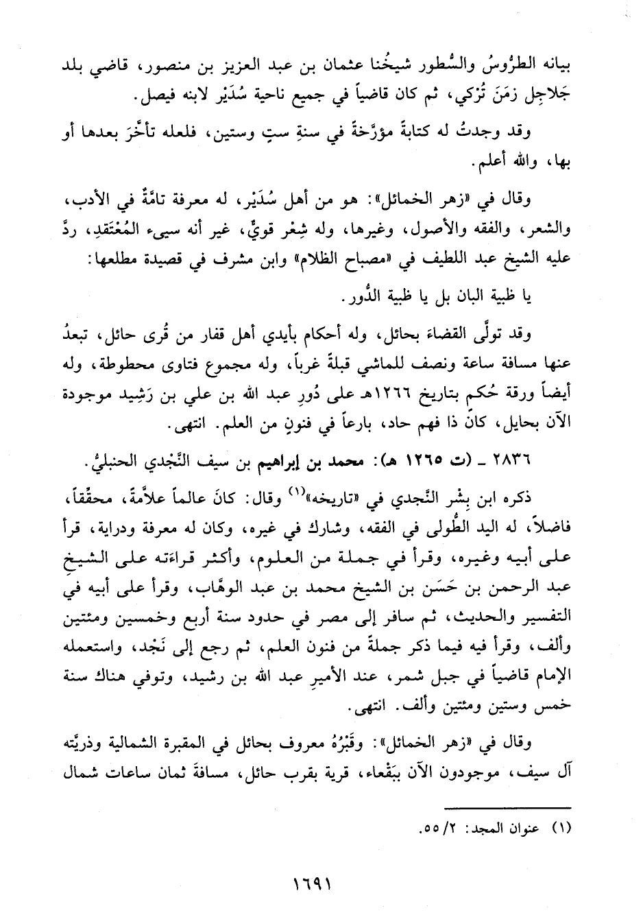 2836 - (ت 1265 هـ): محمد بن إبراهيم بن سيف النَّجْدي الحنبليُّ.